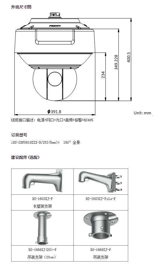 星光級180°全景一體式網(wǎng)絡(luò)高清智能球機( iDS-2DP0818ZIX-D/253(5mm))